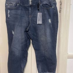 Torrid Premium Women Blue Denim Flat Front Distressed Raw Hem Capri Pants 24 NEW$32Albany, NY