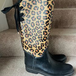 Coach Rubber Rain Boots size 11 Tristee Leopard Print Lace Tie$45Pittsfield, MA