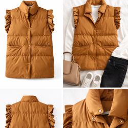 Ruffle Shoulder Puffer Vest – Camel Brown – Mama Boutique – Size L$45Walden, NY
