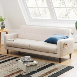 Mid century modern couch - white ivory sofa - pockets on armrest$150Albany, NY