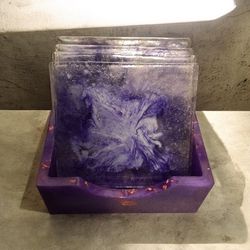 Purple & White Resin Coaster Set – 4 Coasters + Matching Holder$25Newark Valley, NY