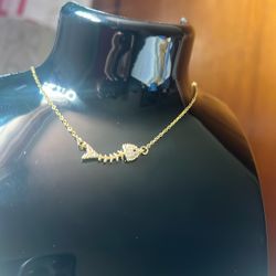 Fashion Jewelry Gold Tone Fishbone Necklace Sparkly Stones$8Johnson City, NY