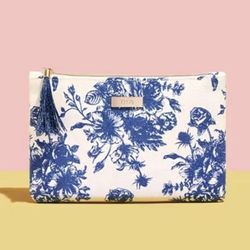 Blue & White Floral Canvas Cosmetic Case with Fringed Tassel, New/Never Used$14West Orange, NJ