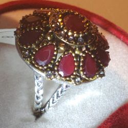 VERY BEAUTIFUL, ATTRACTIVE VINTAGE HANDMADE WBMQDA HOT INDIAN FLOWER SILVER RING CRYSTAL & 11th. SYNTHETIC RUBY STONES. SIZE:8 WEIGHT:12.8GR.$40Brooklyn, NY