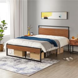 Alden Design Industrial Metal and Wood Platform Full Bed, Walnut Walnut - Full$200Teaneck, NJ