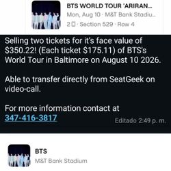 Ticket BTS $350Brooklyn, NY