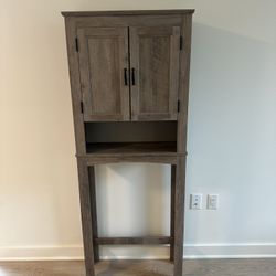 White wooden cabinet with shelves and doors above the toilet in good condition$45New York, NY