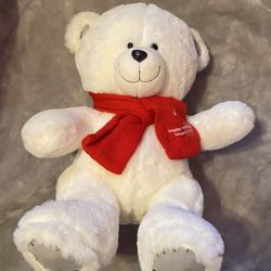 Tanger Outlets Happy Holiday’s Bear White Plush Stuffed Animal Red Scarf Rare $20Floral Park, NY