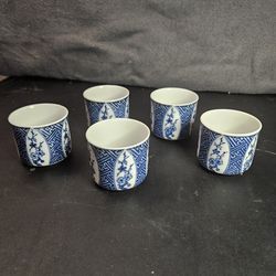 Japanese Blue and White Porcelain Cups Set of 5 with Floral Design$10Bloomfield, NJ