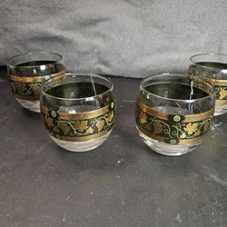 Set of 4 Decorated Glass Rocks Glasses Gold Green Grapevine Pattern Clear Black$15Bloomfield, NJ