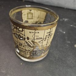 World Globe Whisky Glass with Gold Detailing, Clear Decorated Pictorial Design$10Bloomfield, NJ
