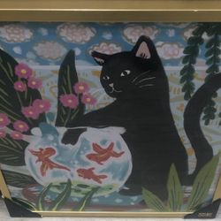 Sapna Shah Framed Wall Art Cat fishing For Fish In A Fish Bowl $125Bayonne, NJ