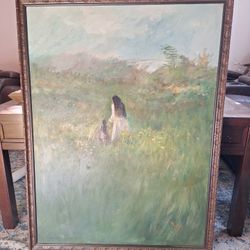 42x32 Impressionist oil 1974 painting of woman and child in a wildflower field$300Roselle Park, NJ