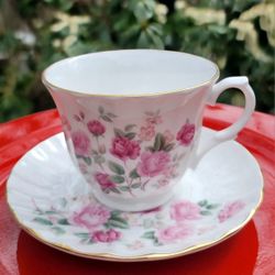 Crown Trent Fine Bone China Teacup Saucer Pink Roses$30West Babylon, NY