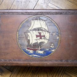 Antique Wooden Keepsake Box with Hand-Painted Sail Ship, c. 1890–1920$175New York, NY