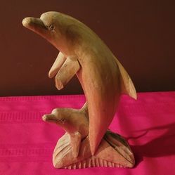 HAND CARVED WOOD SCULPTURE DOLPHIN AND BABY 1'High - see Pic For Chipped Fin$20West Babylon, NY