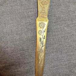 Mid Century Israel Judaica Brass Paper Letter Knife Floral and Menorah Decorated$59Bellerose, NY