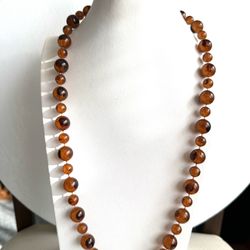 Vintage Transparent and inclusion Amber resin graduated beads necklace $59Queens, NY