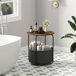 Round Side Table, Small Round End Table with Fabric Basket, Bedside Table with Black Metal Frame, Small Coffee Table, Farmhouse Sofa Side Table for Li$18Brooklyn, NY