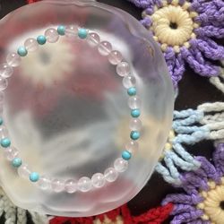 Natural Rose Quartz & Turquoise Beaded Bracelet – 6mm – Beautiful$15Queens, NY