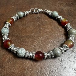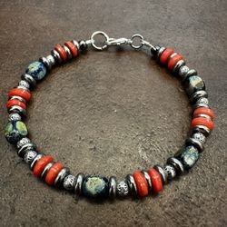 Handcrafted Red Coral and Blue jasper Beaded Bracelet$30Lynbrook, NY