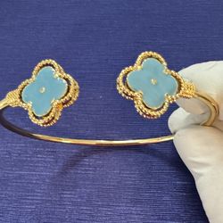 Clover 2 Charm Open Bangle w Sky Blue Enameling $18Brooklyn, NY