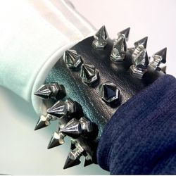 2 PCs faux leather Gothic spike Bracelets - Punk alternative Emo wristbands - studded bracelets Adjustable Punk Cuff Bangle wristband $14New York, NY