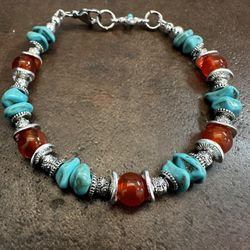 Elegant Turquoise and Carnelian Beaded Bracelet with Silver Details$33Malverne, NY