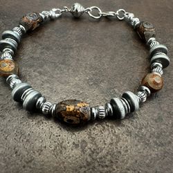 Silver and Brown Tibetan Agate Beaded Bracelet$38Lynbrook, NY