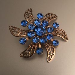 Vintage Small Brooch Sapphire Blue Rhinestones Gold Tone $16Mahwah, NJ