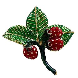 Vintage 1950/1960s Strawberries Brooch Red Green Enamel Gold Tone Very Detailed 3D Bunch Berries Unique Pin $24Ossining, NY