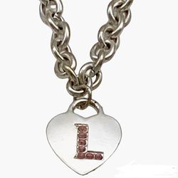 Pendant Necklace Initial L Silver Tone Pink Crystals Chunky $13Ossining, NY