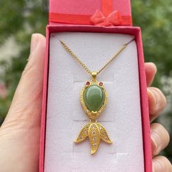 Women's Natural Genuine Real Green Jade Goldfish Fish stainless steel Pendant Necklace$37Queens, NY