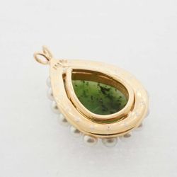 Womens 14K Yellow Gold Green Jade and Pearls Charm Pendant #23084B$600Lawrence, NY
