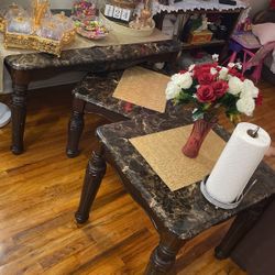 Cherry Wood & Grey Coffee End Glass Table Excellent Each $150 Or Best Offer Bench Chairs And Ceramic Plates $150Queens, NY