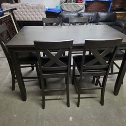 Gray Rustic / Black Leather Counter Height Dining Room Table Set$450West Babylon, NY