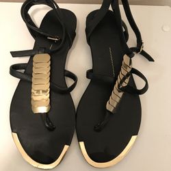 DV Dolce Vita Black Gold Flat Leather Sandals Size 6$25Brooklyn, NY