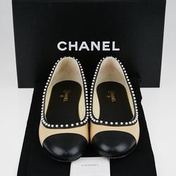 Chanel Lambskin Cap Toe Pearl CC Ballerina Flats.$750New York, NY