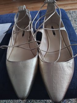 Zara ankle tie ballerina flat pastel metallic gold$30Queens, NY