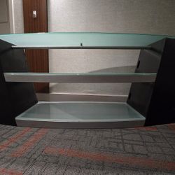 Tv Stand mount, 3 glass shelves, black and wood, living room$30Wayne, NJ