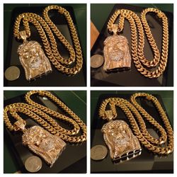 14K Gold Plated Miami Cuban Set With Swarovski Crystal Jesus Head$250Queens, NY
