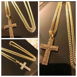 14K Gold Plated Miami Cuban With Swarovski Crystal Cross Pendant$200Queens, NY