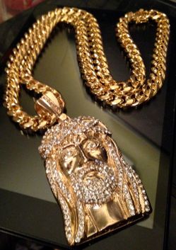 Thin Gold Plated Cuban With Swarovski Jesus Piece$185Queens, NY