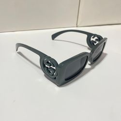 Gucci Black Sunglasses Rectangle Square Interlocking GG Logo Triple Grey$90New York, NY