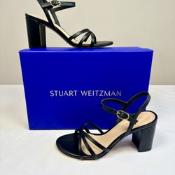 Stuart Weitzman 75MM Starla Leather Block Heel Sandals - Black Size 6.5$80Queens, NY