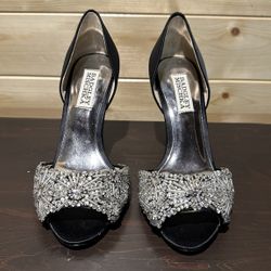 Brand new Badgley Mischka black satin heels with gems in size 5.5$70Hackensack, NJ