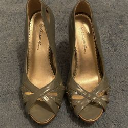 Olive Green Shiny Peep Toe Pumps $8Stony Point, NY