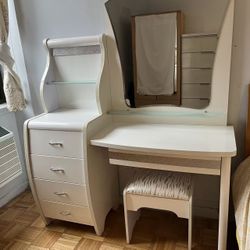 Vanity With Mirror Light and Stool In White$175Staten Island, NY