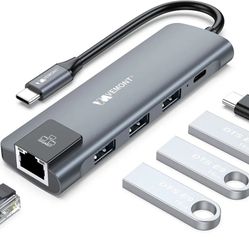 VEMONT USB C hub,5 in1 USB-C hub, Type-c multiport Adapter with Gigabit Ethernet, 3 USB 3.0 hub for Data, 100W Power Delivery, USB c hub for laptop Ma$20Englewd Clfs, NJ