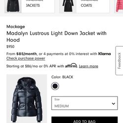 Mackage Madalyn Lustrous Light Down Jacket with Hood$600Bronx, NY